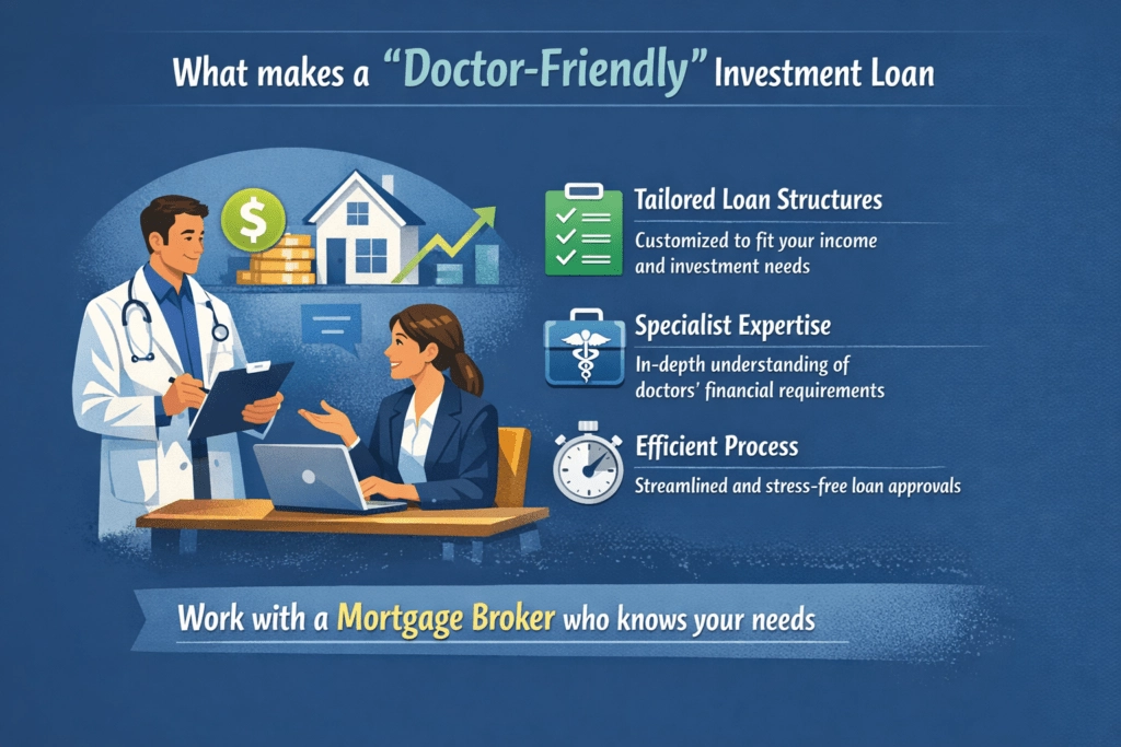 Some lenders offer more flexible policies for medical professionals, but the real value comes from how the loan is structured. Tailored solutions and specialist expertise are crucial, as doctors often require loan structures that address their unique income streams and investment goals. Working with a mortgage broker who provides tailored loan options can make the process much smoother and more efficient for doctors.