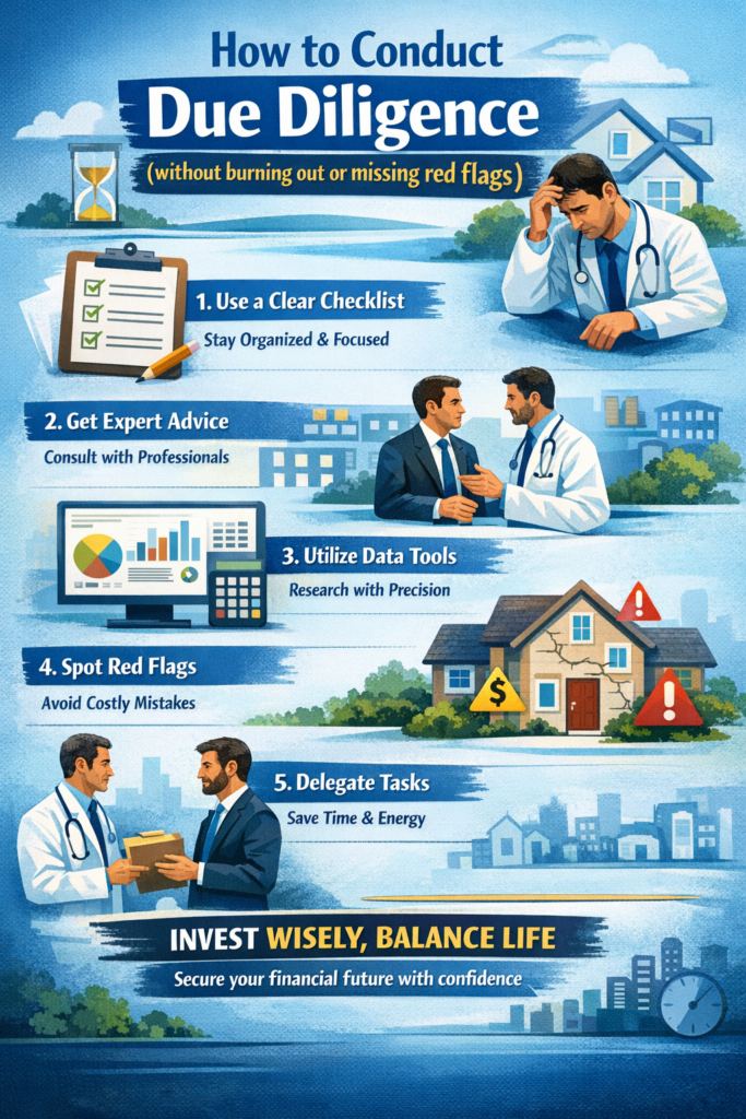 For doctors, conducting due diligence on an investment property is one of the most important steps in securing your financial future—yet it’s also one of the most overwhelming. With a demanding medical career, it’s easy to feel like you don’t have the time or energy to dig into the details of every residential property or commercial property you consider. But skipping this step can put your investment, and ultimately your financial security, at risk.
